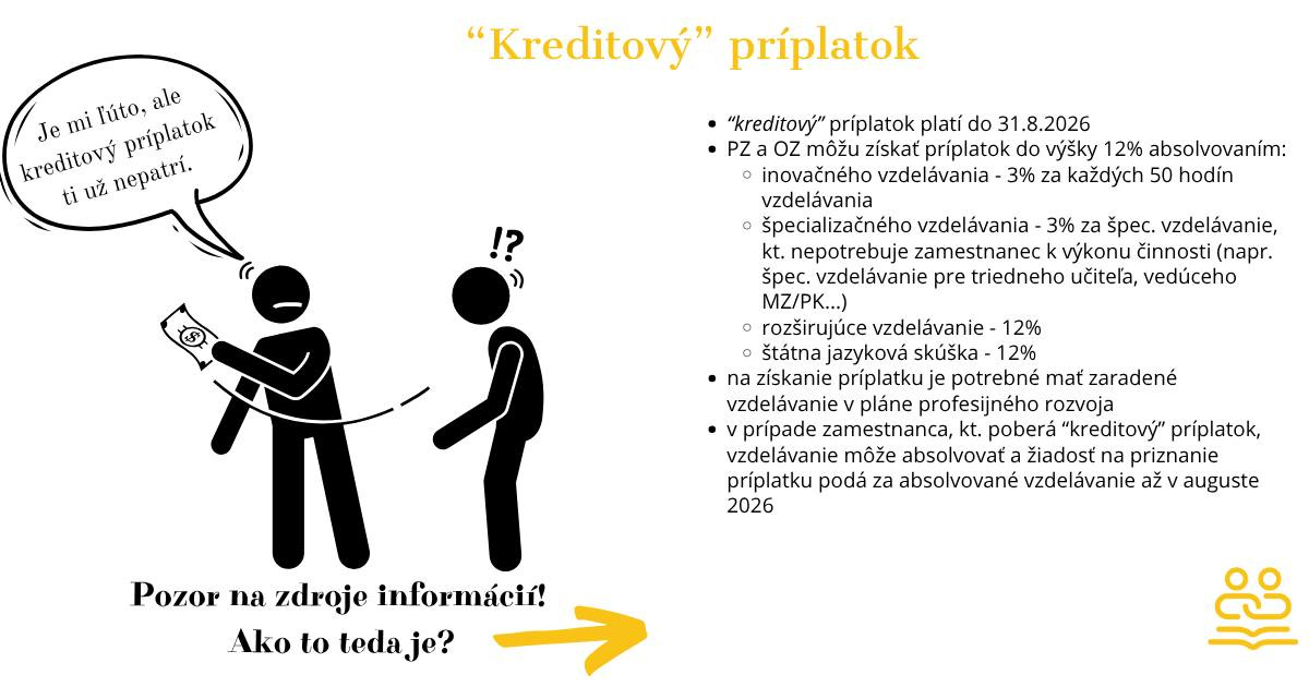 Od 1. januára 2026 sa zavádza aj nový príplatok za hodnotenie pedagogického a odborného zamestnanca, ktorý umožní nadtarifné odmeňovanie na základe kvality a úrovne ich práce.
